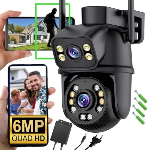 EUROLOOK K-15 Dual to kamera Wi-Fi wyposażona w dwa obiektywy. Posiada rozdzielczość 6mpx, wykrywanie sylwetek ludzkich, śledzenie postaci oraz doświetlenie do 30m.
