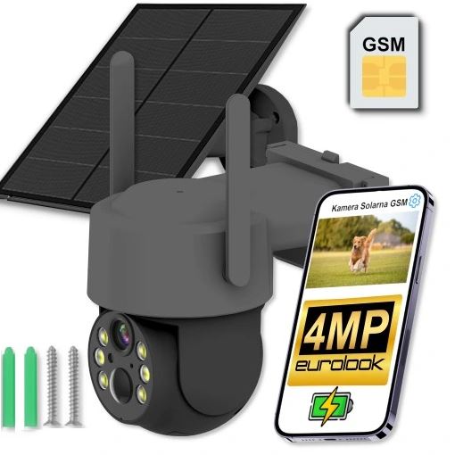 EUROLOOK K-12G SOLAR GSM to kamera zasilana panelem solarnym która zostałą wyposażona w moduł GSM. Posiada rozdzielczość 4Mpx oraz czujnik ruchu PIR.