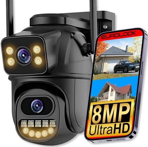 EUROLOOK ZC-04 DUAL to kamera Wi-Fi z dwoma obiektywami. Posiada rozdzielczość 8Mpx, detekcję sylwetek ludzkich oraz śledzenie postaci.