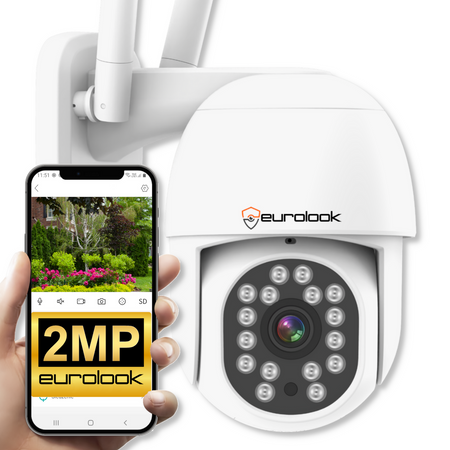 EUROLOOK K-9 to kamera obrotowa z obrazem wysokiej jakości o rozdzielczości 8MP i posiadająca wykrywanie sylwetek ludzkich.
